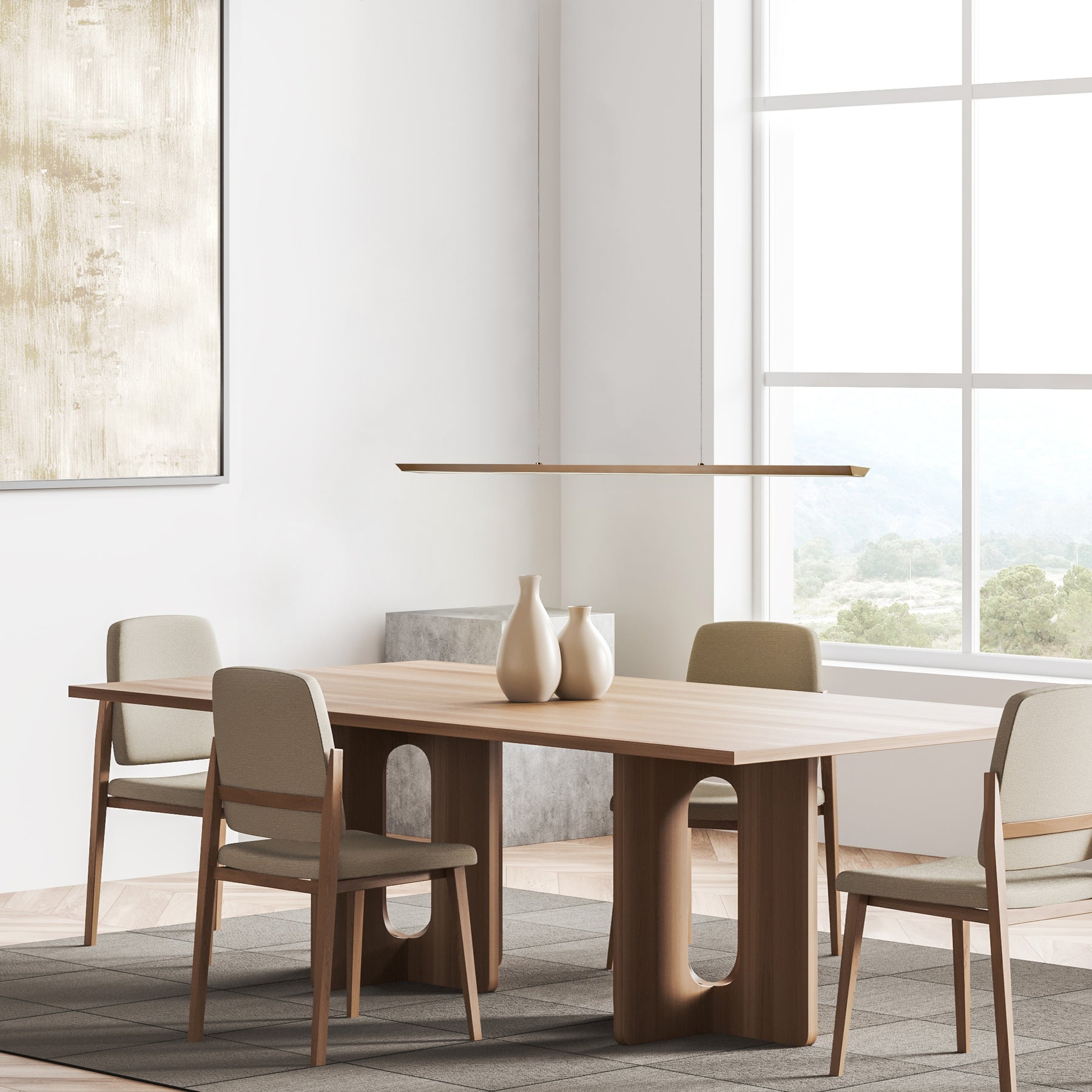 Das angenehm warme Licht schafft eine wohnliche Atmosphäre und sorgt für eine gleichmäßige Ausleuchtung ohne Blendwirkung – ideal für gemeinsame Abende am Tisch, entspanntes Wohnen oder konzentriertes Arbeiten. Durch die schwebende Optik entsteht ein besonders hochwertiger Eindruck, der Räume sichtbar aufwertet.