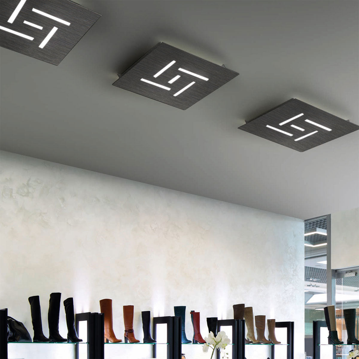 Erhältlich in den verschiedensten Farben. Oberfläche: weiß, schwarz, dunkles rost, taupe, blattsilber, blattgold, oxidiert, dunkelgrau, rosé gebürstet, bronze gebürstet, gold gebürstet, chrom, edelstahl ; Größe: 35x35cm, 19 Watt, 1450 Lumen; Farbtemperatur: 2700 Kelvin; dimmbar: ja, Phasendimmung; Energieeffizienzklasse: G