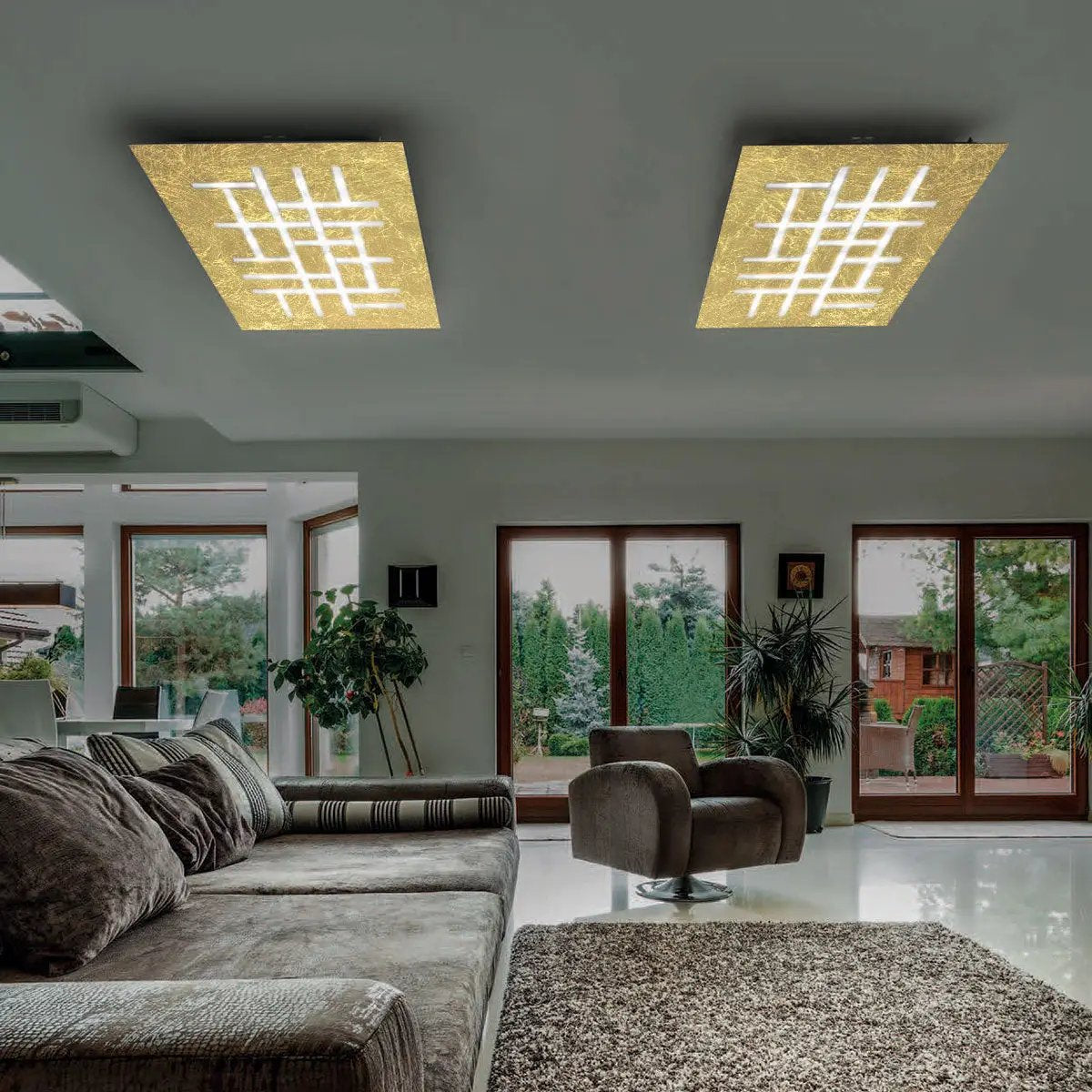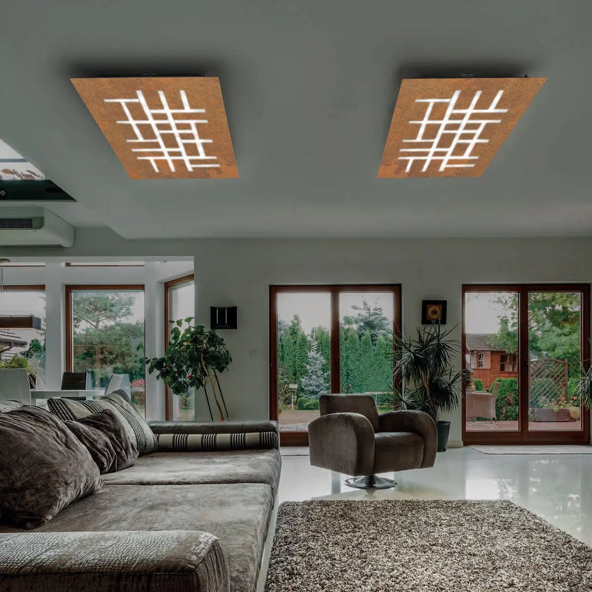 Erhältlich in den verschiedensten Farben. Oberfläche: weiß, schwarz, dunkles rost, taupe, blattsilber, blattgold, oxidiert, dunkelgrau, rosé gebürstet, bronze gebürstet, gold gebürstet, chrom, edelstahl ; Größe: 80x80cm, 70 Watt, 6000 Lumen; Farbtemperatur: 2700 Kelvin; dimmbar: ja, Phasendimmung; Energieeffizienzklasse: G
