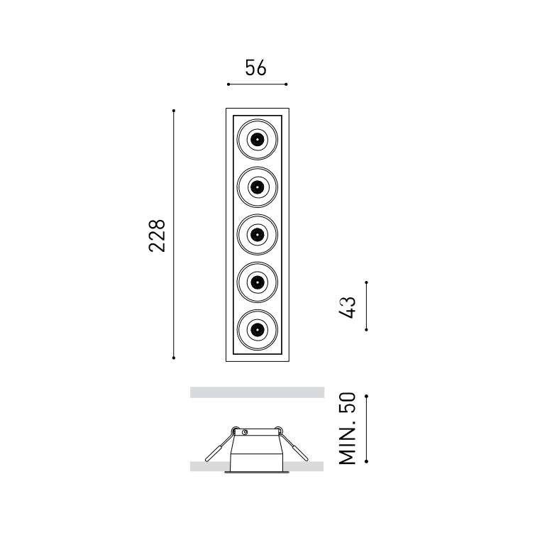 Farbe: schwarz matt oder weiss matt, Länge: 22,8cm, Breite: 5,6cm, Einbautiefe: mind. 5cm, Deckenausschnitt: 5cmx22,2cm, Abstrahlwinkel: 38°, Schutzart: IP20, 700mA, CRI: 90, Energieeffizienzklasse: G, Dimmart: wählbar zwischen on/off (nicht dimmbar), Dali oder Phasecut