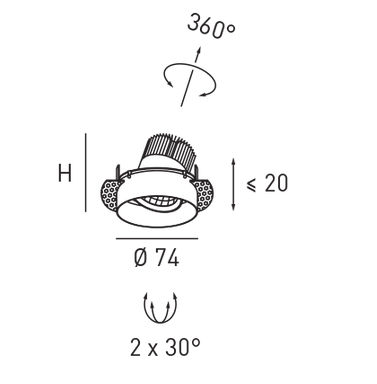 Gisi Move Trimless Einbauleuchte, Rahmenlose Einbauleuchte zum einspachteln. Neue Version auch für Akustikdecken geeignet bis 25mm. Bohrloch 80mm rund. Die Leuchte ist innen schwenkbar.