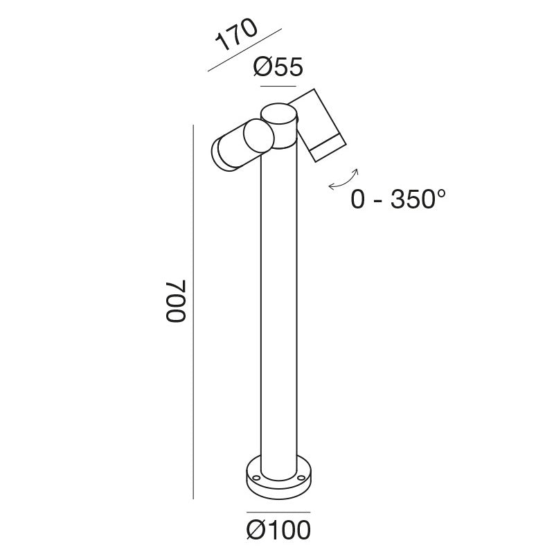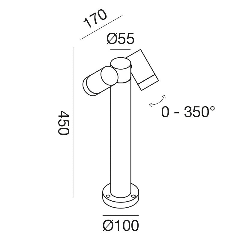 Dank der GU10-Fassungen lässt sich die Lichtwirkung individuell über die Wahl der Leuchtmittel bestimmen. Die Kombination aus funktionaler Flexibilität, robuster Bauweise und klarer Formensprache macht die Pollerleuchte zu einer idealen Lösung für moderne Außenbeleuchtung.