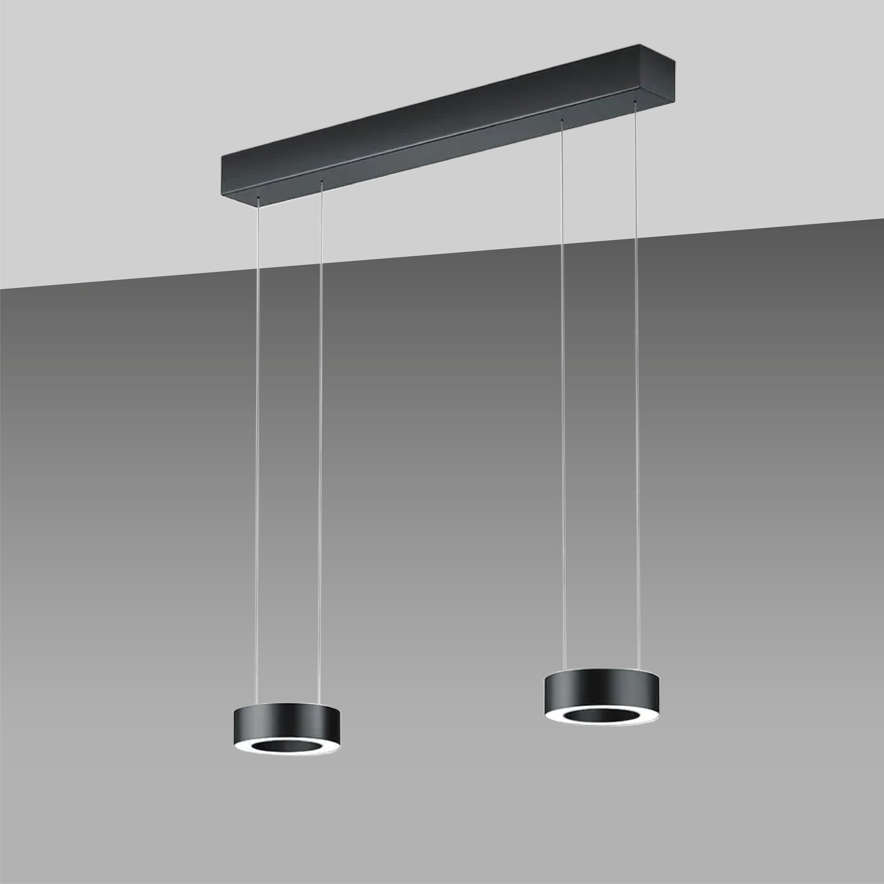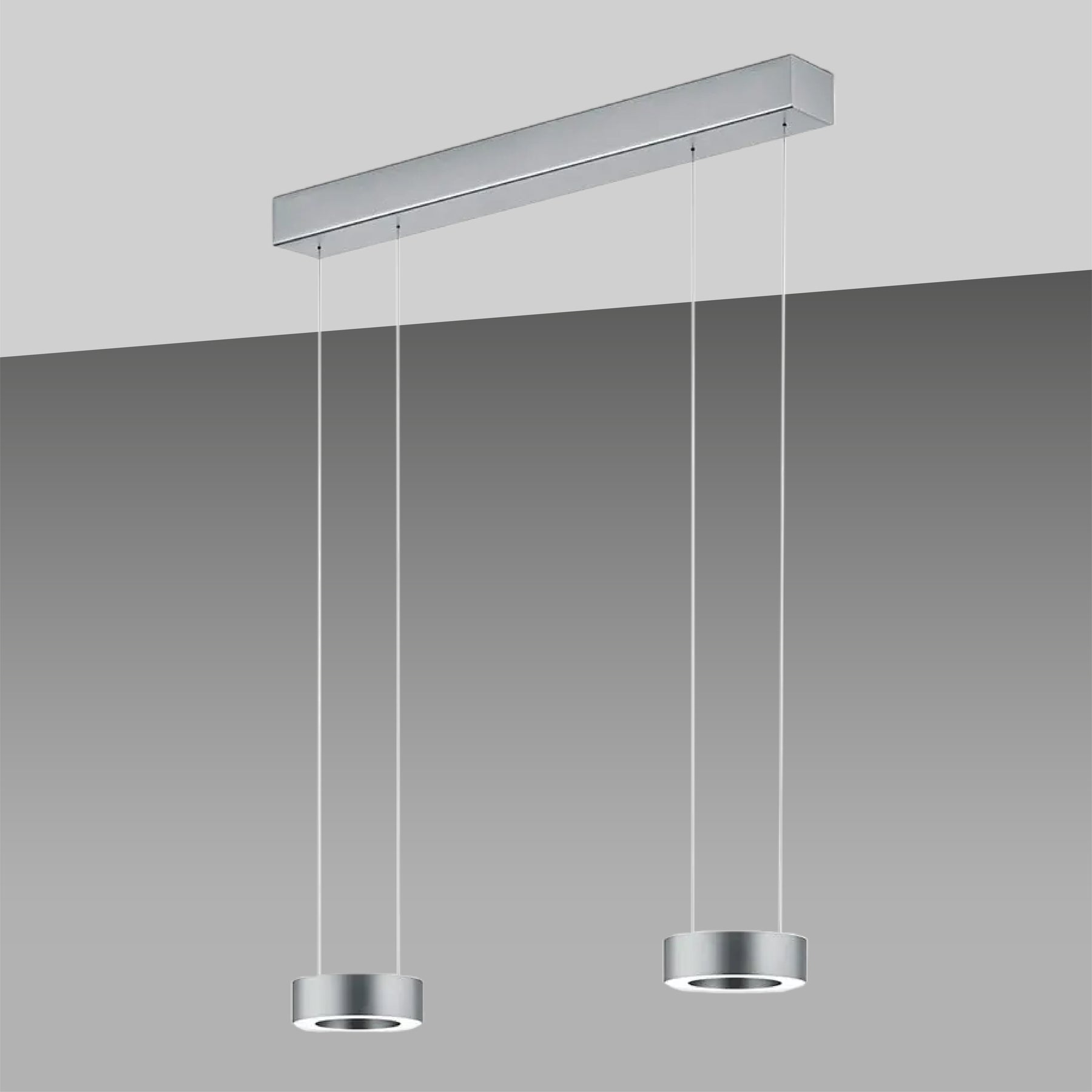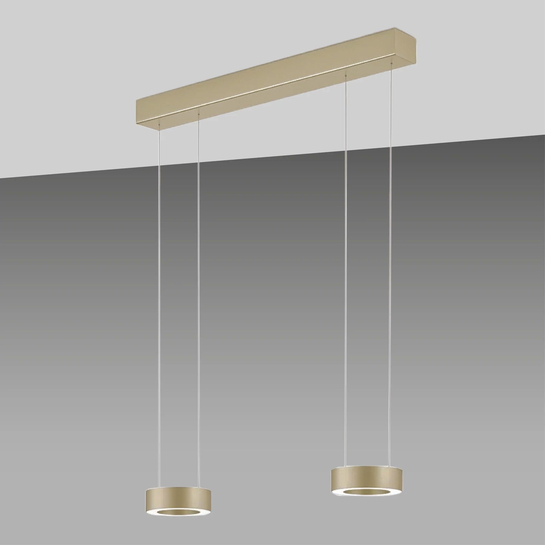 Version 2-flammig: Länge: 70cm Ring Ø 14cm, Höhe Ring: 4,5cm, Höhe: verstellbar 70- 170cm, Baldachin: Ø 5,5cm, Leistung: 4x 12W, Lumen: 5096, Farbtemperatur: 2200 - 3000K, Dimmbar: ja, über Gestensteuerung, Schutzart: IP20, Energieeffizienzklasse: F