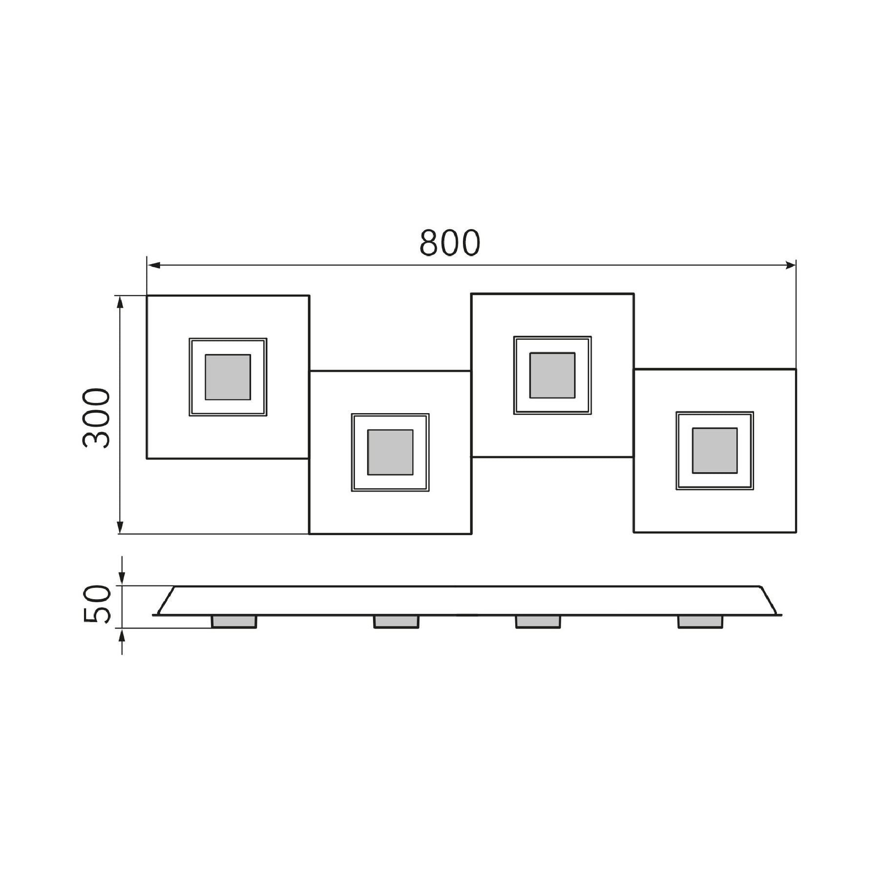 Wand-/ Deckenleuchte Karree 4-flammig