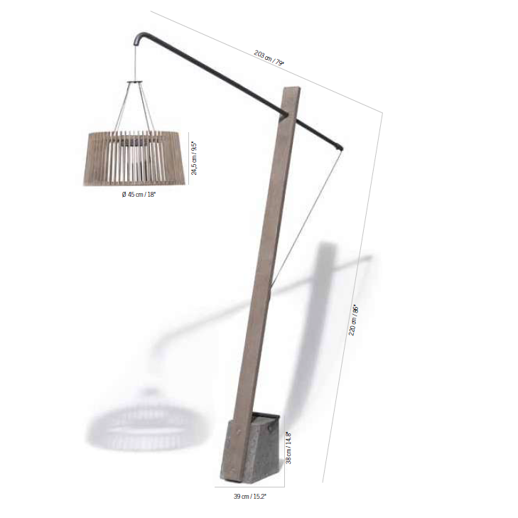 Leistung: 500lm, Farbtemperatur: 3000K, Dimmbar: ja, Schutzart: IP66, Höhe: 220cm, Breite: 203cm, Leuchtenkopf Umfang: 45cm, Höhe: 24,5cm