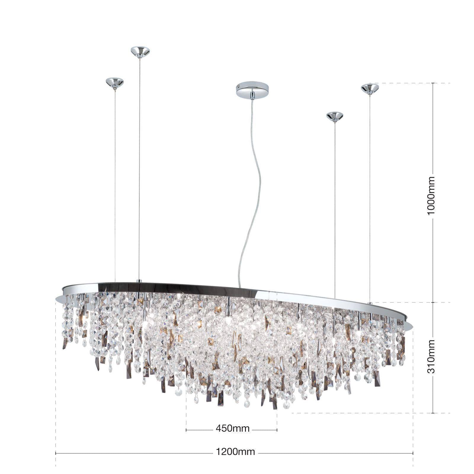 Kristallleuchte CRYSTALRIVER 21-flg., chrom von Orion. Länge: 120cm, Breite 45cm, Höhe: 31cm, Qualität Kristallbehang: K9 Kristallglas, Farbe: chrom, Leuchtmittel inklusive: nein, Fassungstyp: G9, Anzahl der Fassungen: 21, Maximale Bestückung in W pro Fassung: 40W, Dimmbar: ja.