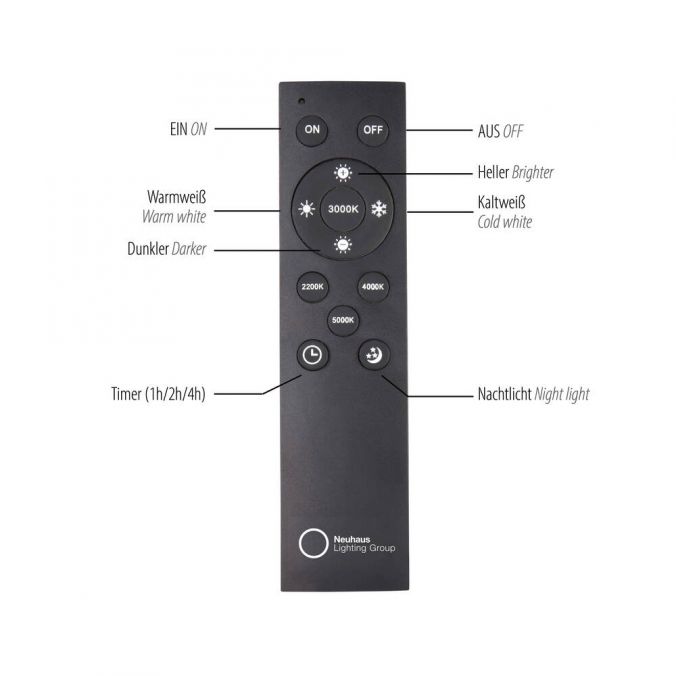 Die Memory-Funktion merkt sich Ihre Lieblingseinstellung, Nachtlicht und Timer sorgen für zusätzlichen Komfort – perfekt für Wohnzimmer, Schlafzimmer oder Kinderzimmer. Kraftvolle  energieeffiziente LED-Technik und eine exzellente Farbwiedergabe lassen jeden Raum in natürlichem, angenehmem Licht erstrahlen. Diese Leuchte ist nicht einfach Beleuchtung – sie ist Ambiente, Stil und Wohngefühl in einem.